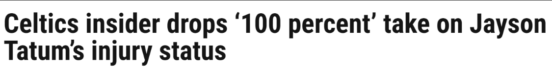 NBC体育的克里斯-福斯伯格透露:“我们认为有百分之百的机会,塔图姆将以不懈的精力和渴望来对抗他的康复,无论人们普遍接受的阿基里斯康复时间是什么。球队100%让塔图姆在撕裂后的几个小时内就进行了手术,并让一位在跟腱修复方面以专业和先进而闻名的外科医生进行了手术。”