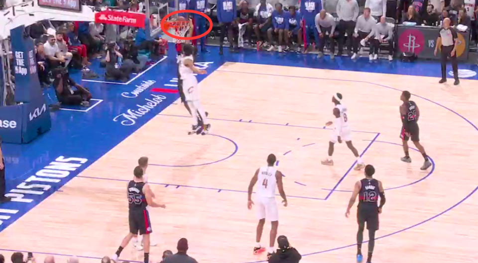第二次是错判,发生在距离第四节结束还有48.4秒。艾伦在封盖杜伦时,手碰到的是球,这是一次没有犯规的封盖,但裁判吹了艾伦防守犯规,给了杜伦两次罚球机会。这是一次错误的判罚,依然是活塞获利,骑士吃亏。